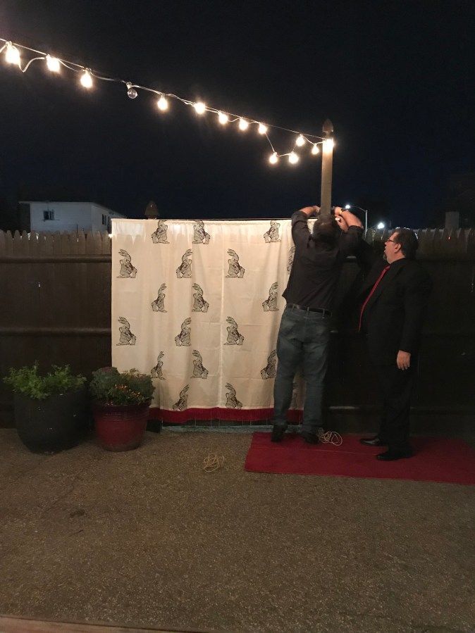 Putting up the red carpet backdrop