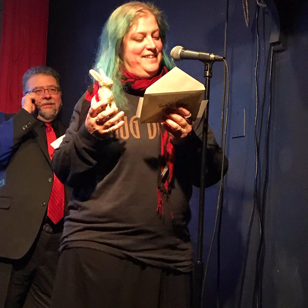 Karen Garrabrant accepts the Best Production One Minute or Under for Irene Pin