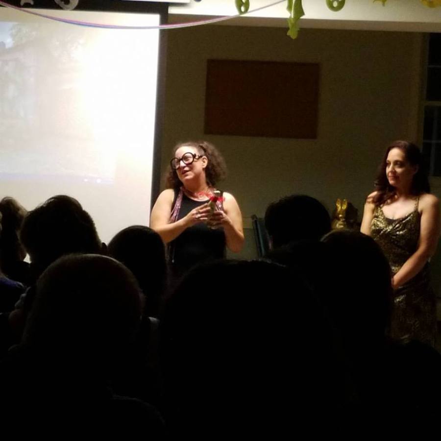 Sou MacMillan with the Omigawd Zilla award for Audrey Dolan