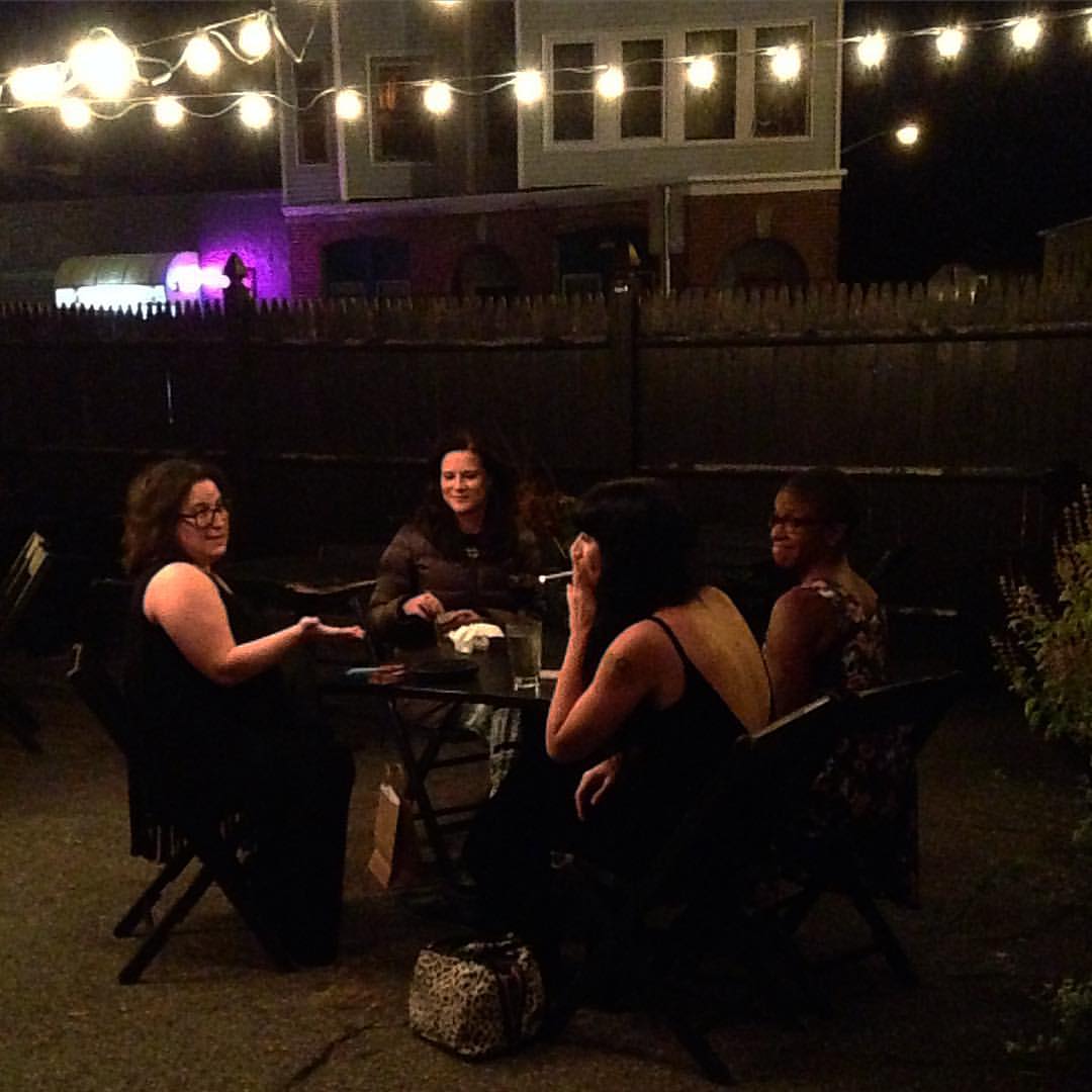 Patio post-show with Sou MacMillan, Kama Fletcher, Rachel Kann, and Rushelle Frazier