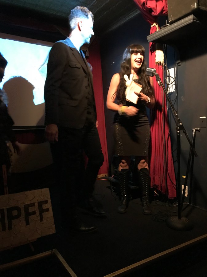 Rachel Kann and Brad Cooper accept for Best Sound or Music in a Production