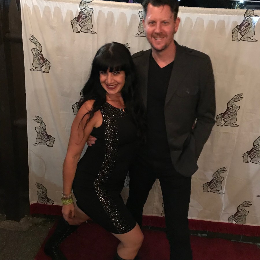 Rachel Kann beconing to Brad Cooper, accepting for Best Overall Production
